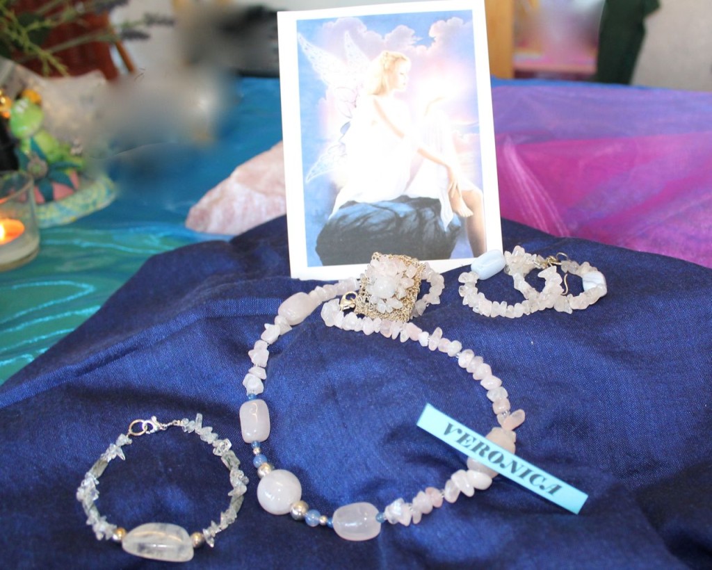 La collana Calliope è costituita da pezzi di ossidiana fiocco di neve(dal classico colore nero con macchie che vanno dal grigio al bianco, dalla forma di un fiocco di neve, da qui il nome)incastonati nel filo in argento, intercalati con piccoli pezzi di quarzo rosa, anch’essi incastonati. la parte centrale è formata da un pendente della stessa forma degli elementi che compongono la collana.